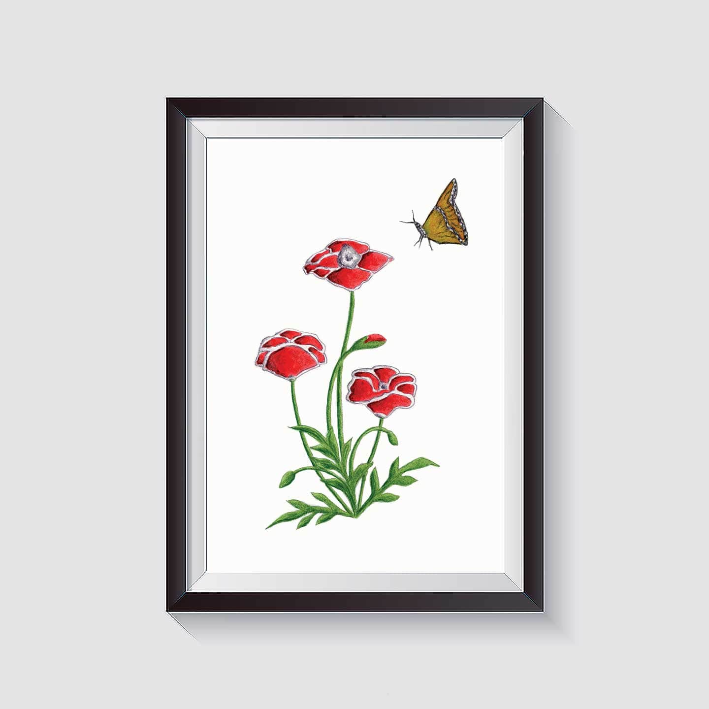 Kannika Art Poppy & Butterfly | Art Print